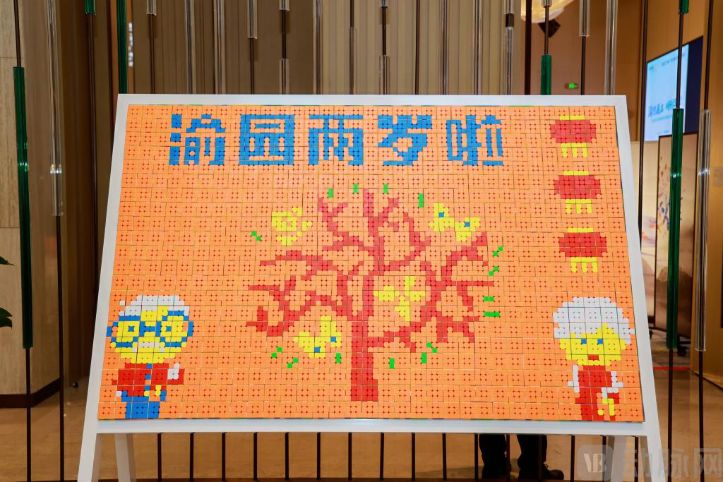 这幅生动作品的创作者,正是渝园魔方俱乐部平均年龄超过 80 岁的长辈们。他们以 " 老有所为 " 的热情,每人按照设计图纸完成二至三组图案单元,将这些色彩斑斓的魔方模块最终拼合成这幅寓意深远的作品。不仅是对渝园两周年的美好祝福,更是长者们在文化养老氛围中焕发活力的真实写照。