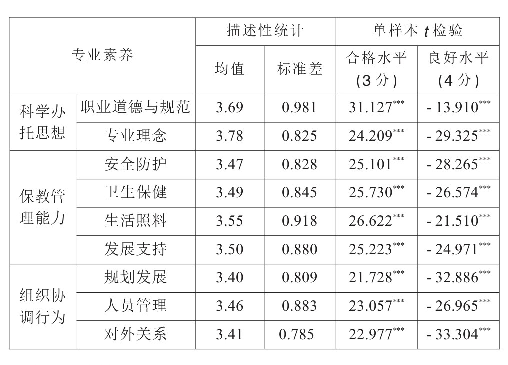 有关托育机构负责人专业素养的描述性统计与检验 图表来自该论文